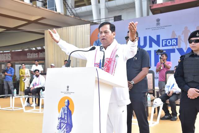 नयाँ दिल्ली: केन्द्रीय बन्दरगाह, जहाज तथा जलमार्गमन्त्री सर्वानन्द सोनोवालले आज यहाँ सरुसजाई खेलकुद कम्प्लेक्सबाट ‘रन फर युनिटी’ लाई झण्डा देखाए। ‘राष्ट्रिय एकता दिवस’को पूर्वसन्ध्यामा आयोजित यस दौडमा मन्त्री सोनोवालले देशलाई एकताबद्ध गर्न र बलियो अनि समृद्ध राष्ट्रको जग बसाल्न सरदार वल्लभभाई पटेलको अमूल्य योगदानलाई प्रकाश पारे। केन्द्रीय मन्त्रीमा असम सरकारका मन्त्री केशव महन्ता र गुवाहाटीका सांसद बिजुली कलिता मेधी पनि सामेल थिए। यो कार्यक्रम भारत सरकारको बन्दरगाह, जहाज र जलमार्ग मन्त्रालयले आसाम सरकारको सहयोगमा भारतको आन्तरिक जलमार्ग प्राधिकरण (आईडब्ल्युएआई) को सहयोगमा आयोजना गरेको थियो।