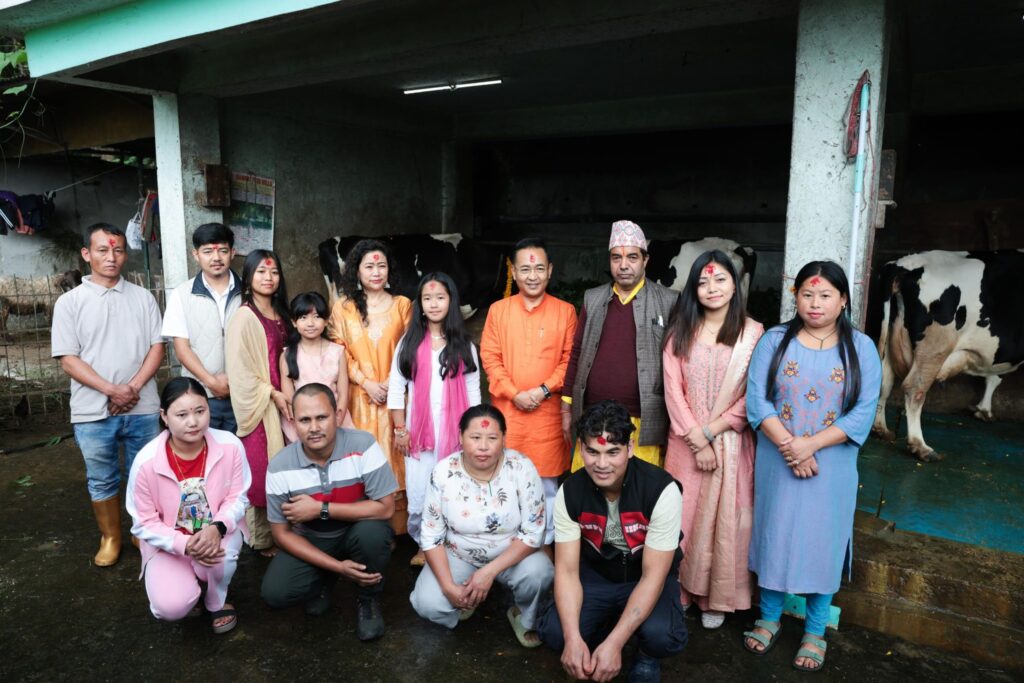गान्तोक: परम्परा र विश्वासको भावपूर्ण उत्सवमा मुख्यमन्त्री प्रेमसिंह तामाङ र उनका परिवारले लक्ष्मी पूजाको पावन अवसर श्रद्धाका साथ पुराना रीतिरिवाजहरूलाई सम्मानपूर्वक मनाए। पुर्खाहरूले पालन गर्दै आएका परम्पराहरूलाई आत्मसात गर्दै पवित्रता र समृद्धिको प्रतीक गौमाताको पूजा गरे।