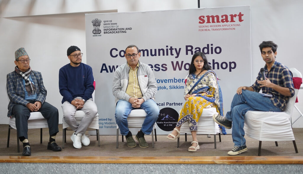 गान्तोक: सूचना एवं प्रसारण मन्त्रालय (जीओआई) द्वारा सिकिङ मोडर्न एप्लिकेशन फर रियल ट्रान्सफर्मेशन (स्मार्ट) को साझेदारीमा आयोजित दुई दिवसीय सामुदायिक रेडियो जागरूकता कार्यशाला आज सिक्किमको गान्तोकमा शुरु भएको छ। कार्यशालाको उद्देश्य सामुदायिक रेडियो स्टेशनहरूबारे जागरूकता बढाउनु, स्टेशन स्थापना गर्ने प्रक्रियालाई अस्पष्ट पार्नु मात्र होइन, तर सामुदायिक जुड़ावलाई गहिरो बनाउनु र समुदायहरूलाई स्टेशन संचालन गर्न सक्षम बनाउनु अनि उनीहरूलाई योग्य संस्थाहरूलाई स्थापना गर्ने प्रक्रियाको माध्यमद्वारा मार्गदर्शन गर्नु हो।