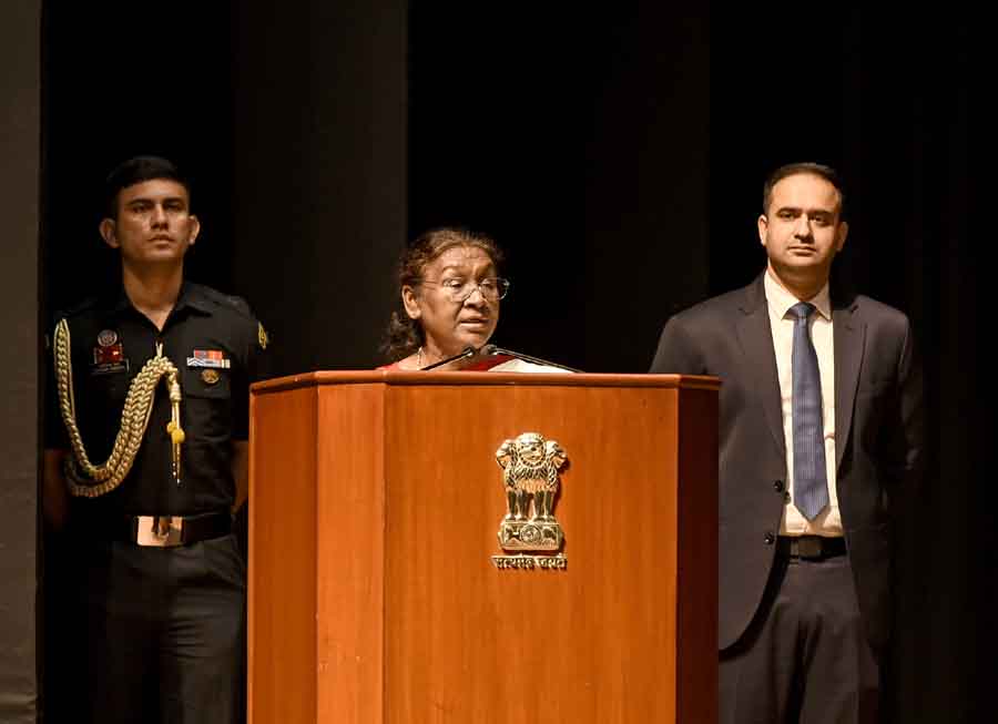 राष्ट्रपति द्रौपदी मुर्मुले भनिन्, ‘हाम्रो न्याय वितरण प्रणालीले एक न्यायसंगत र निष्पक्ष समाजको रूपमा हाम्रो यात्रा बलियो बनाउनुपर्छ। कानूनी सहायता कक्षहरूको कार्यप्रणालीमा आधारित प्रतिवेदन, विधि विद्यालयहरूमा संचालन भएका कानुनी सहायता केन्द्रहरूलाई समर्पित भएको जानकारी पाउँदा खुशी लाग्यो। यस्ता कानुनी सहायता केन्द्रहरूले हाम्रो युवालाई समग्र कानुनी शिक्षा प्रदान गर्न र समाजका कमजोर वर्गहरूको आवश्यकताप्रति संवेदनशील बनाउन योगदान पुर्याउँछन्।‘ राष्ट्रपतिले विचाराधीन कैदीहरूको अवस्था सधैं आफूलाई चासोको विषय रहेको बताइन्। जेल प्रणालीमा आधारित प्रतिवेदनले विचाराधीन कैदीहरूको संख्या घटाउन न्यायपालिकाको भूमिकालाई बुझ्न प्रयास गरेको जान्न पाउँदा खुशी लागेको बताइन्।