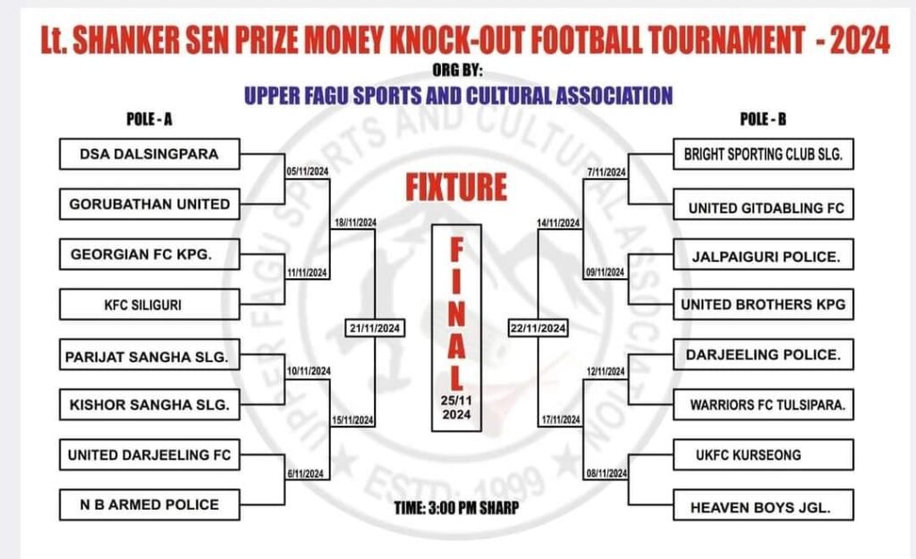 निर्णायक मण्डलीले ट्राइब्रेकरको माध्यमबाट निर्णय लिने क्रममा युकेएफसी खरसाङ बिजयी बनेको छ। भोलिको खेल जलपाईगुडी पुलिस बनाम युनाइटेड ब्रदर्स कालिम्पोङमाझ हुनेछ।