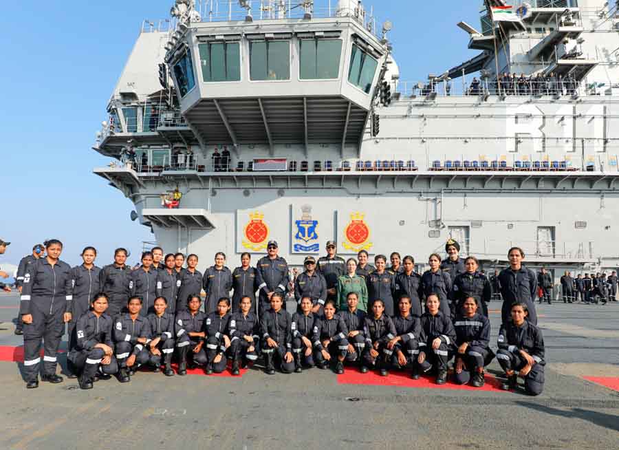 राष्ट्रपतिले आईएनएस विक्रान्तका चालक दलसँग मध्याह्न भोजनमा पनि वार्ता गरिन्। त्यसपछि उनले बेडेलाई सम्बोधन गरिन्, जसलाई समुद्रमा सबै इकाइहरूमा प्रसारित गरियो। -पीआईबी