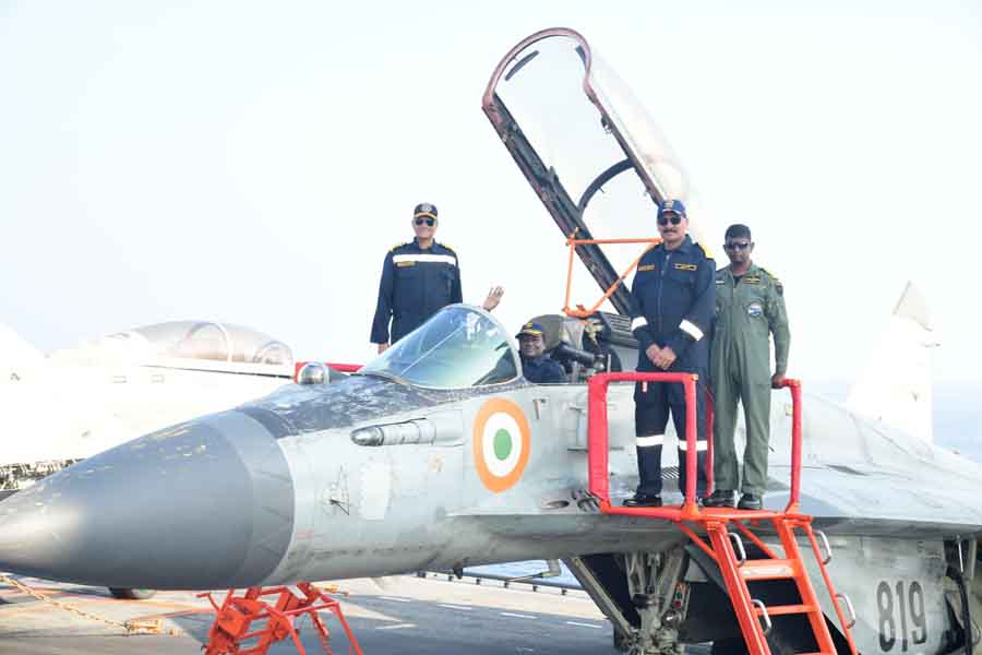 नयाँ दिल्ली: राष्ट्रपति द्रौपदी मुर्मुले हिजो (७ नोभेम्बर) समुद्रमा भारतीय नौसेना का परिचालन प्रदर्शन अवलोकन गरिन्। राष्ट्रपति ७ नोभेम्बरमा आईएनएस हंसा (गोवा स्थित नौसेना हवाई अड्डा) मा पुगिन्, जहाँ उनको स्वागत नौसेना प्रमुख एडमिरल दिनेश के त्रिपाठी र पश्चिमी नौसेना कमानका फ्ल्याग अफिसर कमाण्डिङ-इन-चीफ वाइस एडमिरल सञ्जय सिंहले गरे। उनको आगमनको क्रममा १५० जवानहरूको औपचारिक ‘गार्ड अफ अनर’ परेड पनि गरियो।