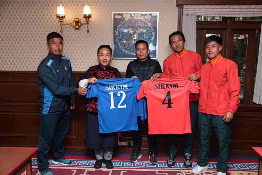 गान्तोक: मुख्यमन्त्री प्रेम सिंह तामाङले ७८औं सन्तोष ट्रफी २०२४-२५ को राष्ट्रिय फुटबल च्याम्पियनसिपमा सहभागी हुन अगरतला जान लागेका सिक्किमेली टोलीका प्रशिक्षक र खेलाडीहरूलाई शुभकामना जनाए।
