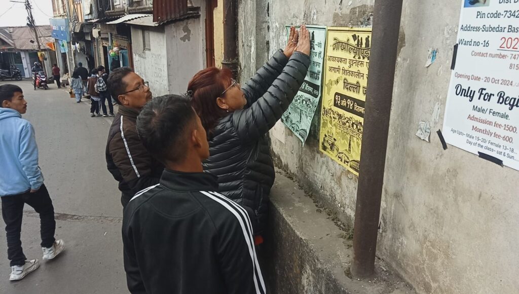 गोर्खाल्याण्ड एक्टिभिष्ट समूहले आज दार्जीलिङबाट पोस्टर टाँस्ने कार्यको थालनी गर्दै घुम, सोनादा हुँदै खरसाङ पनि आएर गरिएको छ। उक्त पोष्टरहरुमा गोर्खाल्याण्ड एक्टिभिष्ट समूहद्वारा दिल्लीमा आयोजित दुई दिवसीय धरणा प्रदर्शनलाई सफल पार्नलाई सबैको साथ र सहभागिताको आह्वान् गरिएको छ। पोस्टर अभियानको विषयमा पत्रकारहरुसित कुराकानी गर्दै गोर्खाल्याण्ड एक्टिभिष्ट समूहको सदस्या विन्ध्या डुक्पाले गोर्खाल्याण्ड एक्टिभिष्ट समूहले संसदको प्रत्येक सत्रमा दिल्लीमा गोर्खाल्याण्डको लागि धरणा प्रदर्शन गर्दै आइरहेका छन्, र यसपाली पनि संसदको शीतकालीन सत्रमा गोर्खाल्याण्ड एक्टिभिष्ट समूहले दिल्लीको जन्तर मन्तरमा धारणा प्रदर्शन र सडक कार्यक्रम आयोजना गरेकोले यस विषयमा सबैलाई बुझाउन दार्जीलिङदेखि पोस्टर खरसाङसम्म टाँस्दै आइपुगेको बताएकी छन्। उनले भनिन्, ‘गोर्खाल्याण्ड एक्टिभिष्ट समूहको भनाइ छ, गोर्खाल्याण्ड माग्नु रहर होइन तर हाम्रो आवश्यकता हो। यो रहर होइन तर बाध्यता हो। त्यसैले गर्दा हामी यसपालीको शीतकालीन अधिवेशनलाई ध्यानमा राखेर गोर्खाल्याण्डको लागि धरणा प्रदर्शन गर्न दिल्ली गईरहेका छौं।‘