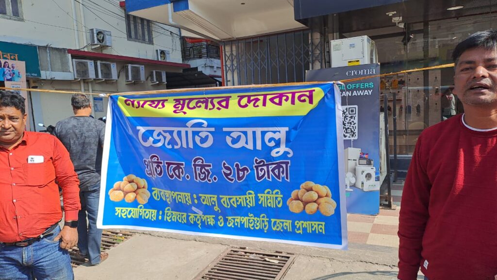 आलु व्यवसायी समितिले खुला बजारमा ज्योति आलु प्रति किलो २८ रुपियाँको दरले बेच्न थालेको छ। यस सन्दर्भमा जिल्ला आलु व्यवसायी समितिका सहायक सचिव तुषार मण्डलले भने, “हामीले देख्यौं कि थोक बजारको तुलनामा खुद्रा बजारमा आलुको मूल्य धेरै उच्च छ, जसका कारण आम उपभोक्ताहरूलाई धेरै समस्याहरू भोग्नुपरिरहेको छ। यो समस्यालाई ध्यानमा राख्दै हामीले सिधै बजारमा आलु बेच्ने निर्णय गरेका छौं, जसले केही हदसम्म मानिसहरूलाई आलु किन्न सजिलो बनाउनेछ।”