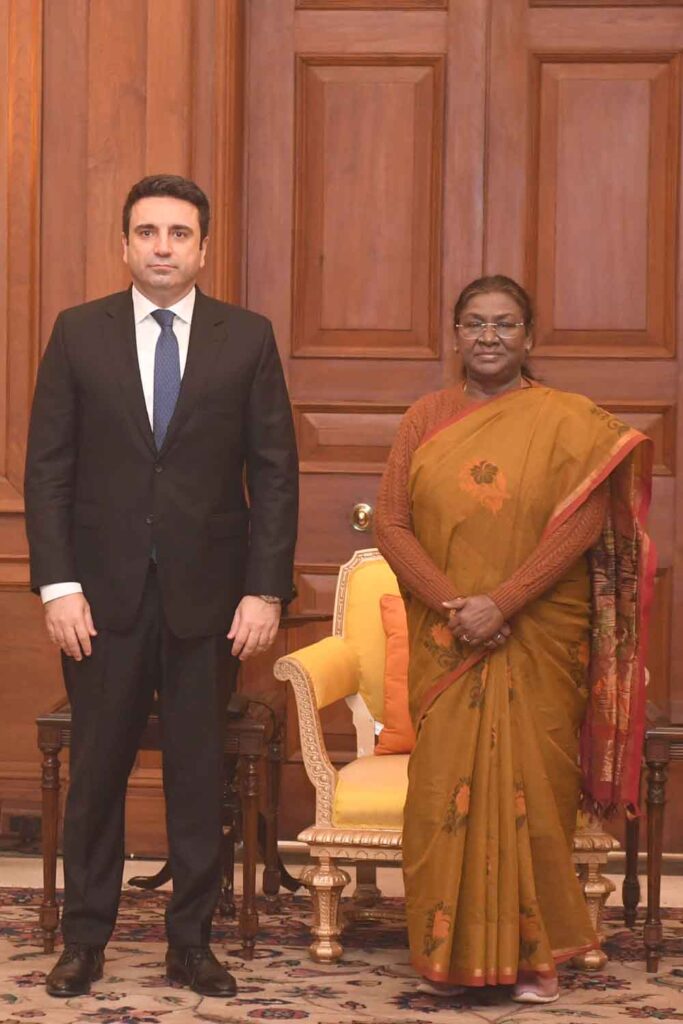 नयाँ दिल्ली: आर्मेनिया गणराज्यको नेशनल एसेम्बलीका अध्यक्ष एलेन सिमोनियनको नेतृत्वमा त्यहाँको संसदीय प्रतिनिधिमण्डलले आज (१६ दिसम्बर) राष्ट्रपति भवनमा भारतकी राष्ट्रपति द्रौपदी मुर्मुसँग भेट गरे। राष्ट्रपतिले प्रतिनिधिमण्डलको स्वागत गर्दै भारत र आर्मेनियाबीचको शताब्दीयौं पुरानो सांस्कृतिक सम्बन्ध तथा साझा लोकतान्त्रिक मूल्यहरूमा आधारित बहुपक्षीय समकालीन सम्बन्धहरूको चर्चा गरिन्।