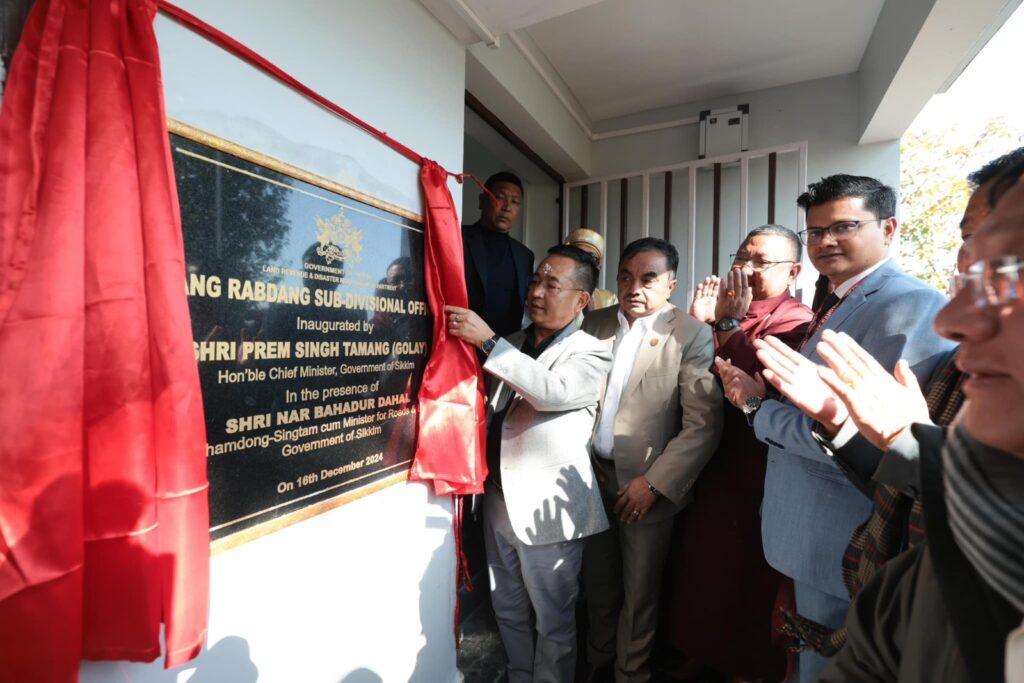 गान्तोक: राज्यका मुख्यमन्त्री प्रेमसिंह तामाङले आज खाम्दोङ सिङताम निर्वाचन क्षेत्रअन्तर्गत साङ राब्दाङमा महकुमा कार्यालयको उदघाटन गरे। कार्यक्रमलाई सम्बोधन गर्दै मुख्यमन्त्री तामाङले यो पूर्वाधारको विधिवत उद्घाटन हुनु एक ऐतिहासिक क्षण रहेको उल्लेख गर्दै यसको लाभ स्थानीयहरूले उठाउनु पर्ने आग्रह गरे। एसकेएम सरकारले सिक्किमेली जनताको सुविधालाई ध्यानमा राखेर ४ देखि ६ वटा जिल्ला बनाएको जानकारी गराए। साङ राब्दाङमा महकुमा अधिकारीको निर्माण हुनुमा क्षेत्र विधायक एनबी दाहाल साथै जिल्ला प्रशासनका अधिकारीहरूको योगदानको पनि मुख्यमन्त्रीले उल्लेख गरे। यस्ता महकुमा कार्यालय अन्य जिल्लाहरूमा पनि स्थापना गरिने मुख्यमन्त्रीले जानकारी आफ्नो सम्बोधनमा अवगत गराए। गत दिनमा सम्पन्न भएको सिक्किम विधानसभा चुनाउमा साङ राबदाङ वार्डका जनताले सबैभन्दा अधिक मत एसकेएमका उम्मेद्वार एनबी दाहाललाई दिएर जिताएको उल्लेख गर्दै क्षेत्र विधायकको तत्परतामा यो ठाउँमा फ्री वाई फाई क्षेत्र बनाईदिएको पनि अवगत बताए। यो महकुमा कार्यालयको निम्ति सित्थैमा जमिन उपलब्ध गराईदिएकोमा स्व. बीएस लामाकी धर्मपत्नि श्रीमती कृष्णामाया तामाङप्रति आभार प्रकट गरे। एसकेएमको सरकार जनताको गुनासो सुन्ने सरकार रहेको उल्लेख गर्दै मुख्यमन्त्री कोषबाट विभिन्न आवश्यकतामा परेकाहरूलाई आर्थिक सहयोग प्रदान गर्ने कार्य भईरहेको जनाए। मुख्यमन्त्री कोषबाट आज धेरै विद्यार्थीहरूले राज्य बाहिरका नामी शैक्षिक संस्थानहरूमा पढ्ने अवसर पाईरहेको उल्लेख गर्दै मुख्यमन्त्रीले गरीब बिमारीहरूको उपचारमा पनि सहयोग पुऱ्याएको बताए। सिक्किमको स्वास्थ्य व्यवस्थासँग राज्यका नागरिक विश्वस्त हुनुपर्ने आवहान गर्दै मुख्यमन्त्रीले सिलगढीमा सिक्किमबाट रेफर भएर गएका बिमारीहरूको निम्ति विश्राम गृह निर्माण गरिने घोषणा गरे। उक्त विश्रामगृहमा ४ दिन सम्म बस्न र खान निःशुल्क रहने आफ्नो सम्बोधनमा मुख्यमन्त्रीले उल्लेख गरे। आज उद्घाटित यो महकुमा कार्यलयबाटै स्थानीय जनताका सबै काम हुने जनाउँदै जनतालाई यसले धेरै स्थानीयहरूलाई धेरै सुविधा पुग्ने बताए। सडक निर्माणका कार्यालाई विशेष ध्यानमा राखेर काम गर्न आवहान गर्दै मुख्यमन्त्रीले छडके भ्रमण गरेर कामको प्रगतिबारे जायजा लिन विभागीय अधिकारीहरूलाई सुझाव दिए। साङको सडक पनि छिट्टो बनाउन मुख्यमन्त्रीले निर्देशन दिए। सिङताम खाम्दोङका पूर्व विधायक एमके शर्मा महत्वाकांक्षी बनेकोले क्षेत्रवासी जनताले धेरै दुख पाएको बताए। जनतालाई विश्वासघात गर्ने र पार्टीलाई धोका दिंदा २०२४को चुनावमा यहाँका जनताले उनलाई नराम्रोघतले पराजित गरेको उल्लेख गरे।