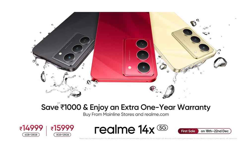 रियलमी १४एक्स ५जी टिकाउ स्मार्टफोनको परम्परागत अपेक्षाभन्दा परे उत्कृष्ट मूल्यमा उत्कृष्ट स्मार्टफोन प्रस्तुत गर्ने रियलमीको प्रतिबद्धताको उत्कृष्ट उदाहरण हो। यसमा मिडियाटेक डायमेन्सिटी ६३०० ५जी चिपसेट छ, जसले सहज प्रयोगकर्ता अनुभव प्रदान गर्दछ। यसको नवीन डायमण्ड डिजाइनको प्रेरणा क्रिस्टल र रत्नहरूबाट लिइएको हो। यसमा सोनिकवेभ वाटर इजेक्सन र रेनवाटर स्मार्ट टचजस्ता फिचर्स छन्, जसले चुनौतीपूर्ण वातावरणमा पनि प्रयोगकर्ता र उपकरणबीचको अन्तरक्रिया प्रभावकारी बनाउँछ। रियलमी १४एक्स ५जी तीन आकर्षक रङहरू क्रिस्टल ब्ल्याक, गोल्डेन ग्लो र ज्वेल रेडमा उपलब्ध हुनेछ। यसको ६जीबी+१२८जीबी भेरियन्ट १४,९९९ रुपियाँमा र ८जीबी+१२८जीबी भेरियन्ट १५,९९९ रुपियाँमा रियलमीको आधिकारिक वेबसाइट, फ्लिपकार्ट र अन्य मेनलाइन च्यानलहरूमा उपलब्ध हुनेछ।