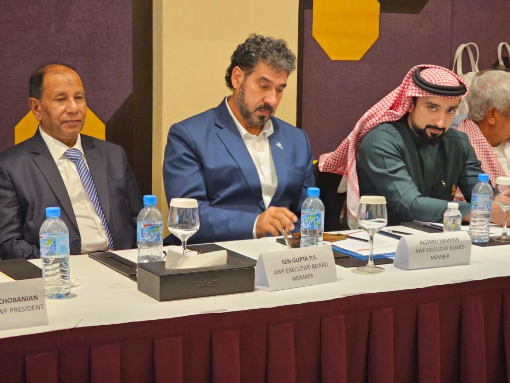 ”हार्दिक बधाई… नेपाल राष्ट्रिय बंगला समाजको आजीवन सदस्य एवं नेपालको इतिहासमा भारोत्तोलन खेलको संस्थापक मिठु सेन गुप्ता (पार्थ सारथी सेन गुप्ता)… भारोत्तोलनका महत्त्वपूर्ण मुद्दाहरूलाई सम्बोधन गर्न नेपालबाट सहभागी हुँदै…एसियाली भारोत्तोलन महासंघ एडब्ल्युएफ कार्यकारी बोर्ड बैठकमा दिसम्बर १८, २०२४ मा, र्याडिसन ब्लू होटल, दोहा,कतार, २०२४ एसियाली युवा तथा जुनियर भारोत्तोलन च्याम्पियनसिपको दौरान।”