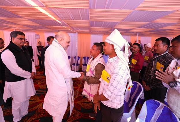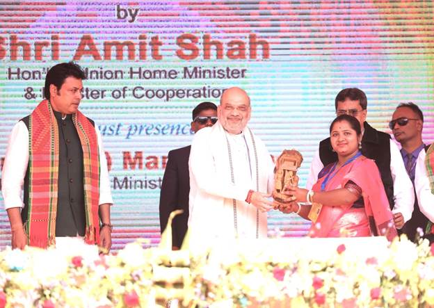 केन्द्रीय गृहमन्त्री शाहले भने, “त्रिपुरामा जब परिवर्तन भयो र हाम्रो सरकार बन्यो, तब केन्द्रमा पनि मोदीको नेतृत्वमा सरकार थियो। त्यस समयमा भएको सम्झौताका कारण करिब ४० हजार मानिसहरूको बसोबास, रोजगारी, शिक्षा, स्वास्थ्य, शुद्ध पेयजल, शौचालय, र महिलाहरूका लागि सहकारी संस्थाहरूको व्यवस्था गरिएको छ। पहिलेका सरकारले यस्ता योजनाहरू बनाएका थिए, तर ती कहिल्यै लागू भएनन्।” उनले भने, ”प्रधानमन्त्री मोदीको नेतृत्वमा ९०० करोड रुपियाँको खर्चमा ११ नयाँ गाउँहरू निर्माण गरिएको छ। ती गाउँहरूमा बिजुली, सडक, पानी, सोलार स्ट्रीट लाइट, सस्तो खाद्यान्न पसल, आँगनवाडी विद्यालय, र स्वास्थ्य केन्द्रहरूको सुविधा उपलब्ध छ। ब्रू समुदायका व्यक्तिहरूलाई भारतका अन्य नागरिकझैँ सबै अधिकार प्रदान गरिएको छ। उनीहरूको नाम मतदाता सूचीमा दर्ता गरिएको छ, राशन कार्ड तथा स्वास्थ्य कार्ड उपलब्ध गराइएको छ, र सहकारी संस्था बनाइ रोजगारको व्यवस्था गरिएको छ। यी मानिसहरू अब १२०० वर्गफुट जग्गाका मालिक बनेका छन्। मोदी सरकारले उनीहरूका लागि घर निर्माण गराएको छ र २४ महिनासम्म ५००० रुपैयाँ मासिक सहयोग दिइरहेको छ।”
