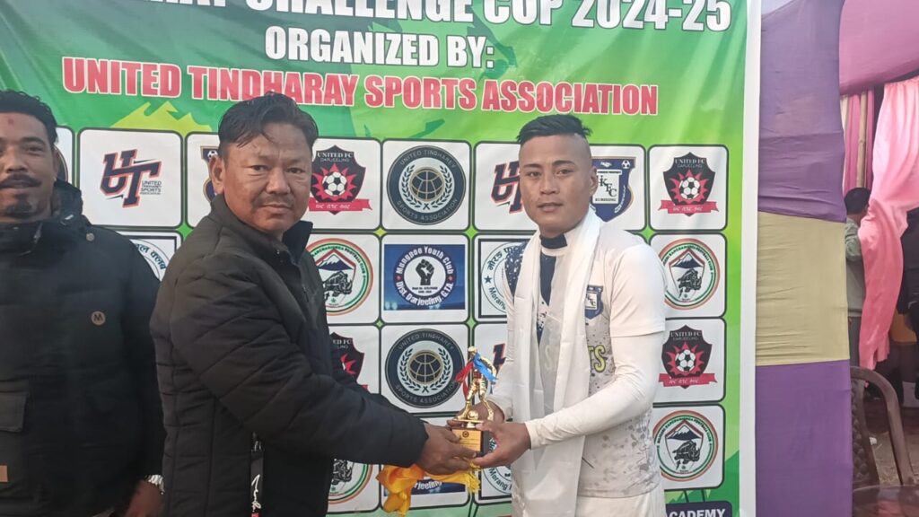 खरसाङ: तीनधारे च्यालेञ्च कप फुटबल टुर्नामेन्टमा मोरङ नेपाललाई पराजित गर्दै युकेएफसी खरसाङ सेमी फाइनलमा प्रवेश गरेको छ। युनाइटेड तीनधारे स्पोर्ट्स एसोसिएसनको आयोजनामा तीनधारेको मिठाईडाँडा खेल मैदानमा भईरहेको तीनधारे च्यालेञ्च कप फुटबल टुर्नामेन्टको अन्तिम क्वाटर फाइनल खेल आज सुन्दर हराईचा मोरङ नेपाल र युकेएफसी खरसाङमाझ सम्पन्न भएको छ। यस खेल शुरु भएको छैटौं मिनटमा नै नेपालको जर्सी नम्बर ५ विशाल भण्डारीले गोल गरेर बढत बनाएका थिए। पहिलो हाफको खेल १-० मा समाप्त भएको थियो पहिलो हाफको खेलमा नेपालले सुन्दर खेल प्रदर्शन गरेका थिए। तीनधारेको मिठाईडाँडा खेल मैदानमा आज नेपालको खेल हेर्नलाई रेकर्ड दर्शकहरुको उपस्थिति रहेको थियो। दर्शकहरुको अपार माया पाएको नेपालले पनि पहिलो हाफको खेलमा छोटो पास गर्दै आकर्षक खेल देखाएका थिए भने धेरैपल्ट गोल गर्ने मौकालाई गोललाई परिणत गर्नु सकेन। दोस्रो हाफको खेलमा भने युकेएफसीले लगातार आक्रमण गरिरहे। यस क्रममा युकेएफसीको जर्सी नम्बर ६ बीरेन प्रधानले सुन्दर गोल गरेर खेल बराबरीमा ल्याएका थिए। दोस्रो हाफको खेलमा युकेएफसीले लगातार रुपमा विपक्षी दलको गोल पोष्टमा आक्रमण गरिरह्यो अनि खेल समाप्त हुन केवल दुई मिनटको समयमा युकेएफसीको जर्सी नम्बर ६ बीरेन प्रधानले आफ्नोे साथै टिमको लागि दोस्रो गोल गरेका थिए। यसरी यो खेलमा युकेएफसी २-१ को अन्तरले विजयी हुँदै सेमी फाइनलमा प्रवेश गरेको छ। आजको खेलमा म्यान अफ् द म्याच युकेएफसीको तर्फबाट दुई गोल गर्ने बीरेन प्रधान चयन भएका छन्। अब सेमी फाइनलमा युकेएफसीको भीडन्त युनाईटेड एफसी दार्जीलिङमाझ हुने भएको छ। आजको खेलमा मुख्य अतिथिको रुपमा विकास तामाङ उपस्थित रहेका थिए भने विशिष्ट अतिथिको रुपमा सुमन लोहार र अन्य उपस्थित रहेका थिए। आजको खेलमा नेपालले आफ्नोे राष्ट्रिय झण्डाको साथमा मैदान प्रवेश गरेका थिए भने तीनधारेको मिठाईडाँडा खेल मैदानमा सम्भवतः प्रथमपटक भारत र नेपालको राष्ट्रिय गीत बजेको थियो। नेपालले दर्शकहरुबाट अपार साथ पाए पनि खेल भने जित्न सकेन। नेपालको तर्फबाट केही राष्ट्रिय खेलाडीहरु पनि उपस्थित रहेका थिए भने युकेएफसीको तर्फबाट जीटीए ईलेभेनमा खेल्ने तीनजना खेलाडीहरु क्रमैले गोल स्कोरर बीरन प्रधान, सदिश राई र आकाश प्रधान रहेका थिए।