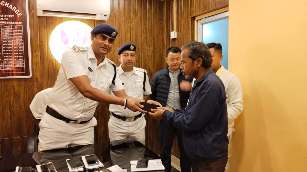 सिलगढी: भक्ति नगर थानाअन्तर्गत आशिघर चौकीको पुलिसले चोरी र हराएको मोबाइल फोन बरामद गरी वास्तविक मालिकलाई हस्तान्तरण गरेको छ। बिहीबार आसिघर चौकीका ओसी पप्पु सिंहले चोरी र हराएको ११ वटा मोबाइल बरामद गरी वास्तविक धनीलाई बुझाए। केही महिना यता शहरका भित्री क्षेत्र, आसिघर चौकीमा मोबाइल चोरी र लुटपाटका उजुरी परेको बताइएको छ। घटनाको अनुसन्धान गरी चोरीका र हराएका ११ वटा मोबाइल बरामद गरिएको थियो। बिहीबार आसिगर चौकीको पुलिसले वास्तविक मालिकलाई बुझाएको छ। यसैबीच हराएको मोबाइल फिर्ता पाएपछि सबै खुशी भएका छन्। उनीहरूले पुलिसलाई धन्यवाद दिए।