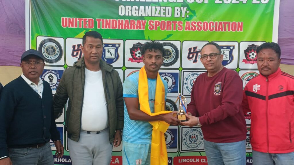 खरसाङ: जर्जियन एफसी कालेबुङ तीनधारे च्यालेञ्च कप फुटबल टुर्नामेन्टको फाइनलमा प्रवेस गर्ने पहिलो टिम बनेको छ। युनाइटेड तीनधारे स्पोर्ट्स एसोसिएसनको आयोजनामा तीनधारेको मिठाईडाँडा खेल मैदानमा भईरहेको तीनधारे च्यालेञ्च कप फुटबल टुर्नामेन्ट अन्तर्गत आज पहिलो सेमी फाइनल खेल जर्जियन एफसी कालेबुङ र ब्राइट स्पोर्टिङ्ग क्लब सिलगढीमाझ सम्पन्न भएको थियो। यस खेलको पहिलो हाफमा कुनै गोल भएन अनि पहिलो हाफको खेल बराबरीमा समाप्त भएको थियो। तर जर्जियन एफसी कालेबुङको जर्सी नम्बर २४ कुञ्जमान थापाले गरेको प्रहार ब्राइट स्पोर्टिङ्ग क्लब सिलगढीको गोल पोष्टमा लागेर फर्केको थियो। पहिलो हाफको खेलमा दुवै दलबाट प्रयास गरे पनि गोल भने हुन सकेन। दोस्रो हाफको खेलमा पनि खेल बराबरीमा चलेको थियो। तर दोस्रो हाफको खेलमा दिइएको अतिरिक्त ३ मिनटको खेलमा जर्जियन एफसी कालेबुङको जर्सी नम्बर २२ प्रवीण सुब्बाले गोल गरेर आफ्नोे टिमलाई फाइनलमा प्रवेश गराउन सफल बनेको छ। यस खेलमा म्यान अफ् द म्याच जर्जियन एफसी कालेबुङको जर्सी नम्बर ५ प्रवेश रोय चयन भएका छन्। यस सेमी फाइनल खेलमा जर्जियन एफसी कालेबुङको तर्फबाट पाँचजना खेलाडीहरु जीटीए ईलेभेनका खेलाडीहरु मैदानमा उत्रिएको बताइएको छ। तीनधारे च्यालेञ्च कप फुटबल टुर्नामेन्टको पहिलो सेमी फाइनल हेर्न आएका अधिकांश दर्शकहरुले पनि जर्जियन एफसी कालेबुङलाई सपोर्ट गरेको देखिएको थियो।आजको खेलमा मुख्य अतिथिको रुपमा बिन्नी शर्मा अनि विशिष्ट अतिथिको रुपमा विराज प्रधान उपस्थित रहेका थिए। अब आईतबार हुने दोस्रो सेमी फाइनल खेल युनाइटेड एफसी दार्जिलिङ र युकेएफसी खरसाङमाझ सम्पन्न हुने भएको छ। दोस्रो सेमी फाइनलमा जसले जित्छ शनिबारको विजेता जर्जियन एफसी कालेबुङसित उपाधिको लागि भिड्नेछ। आजको पहिलो सेमी फाइनल खेल विषयमा पत्रकारहरुसित कुराकानी गर्दै युनाइटेड तीनधारे स्पोर्ट्स एसोसिएसनको सचिव रञ्जित थापाले आजको खेलमा आशा अनुरुप जर्जियन एफसी कालेबुङले जितेर तीनधारे च्यालेञ्च कप फुटबल टुर्नामेन्टको फाइनलमा प्रवेश गरेको बताएका छन्। उनले ब्राइट स्पोर्टिङ्ग क्लब सिलगढीले पनि राम्रो खेल प्रदर्शन गरेको तर खेल सकिन अतिरिक्त 3 मिनटको समयमा जर्जियन एफसी कालेबुङले गोल गरेर बिजय हुँदै फाइनलमा प्रवेश गरेको बताएका छन्।
