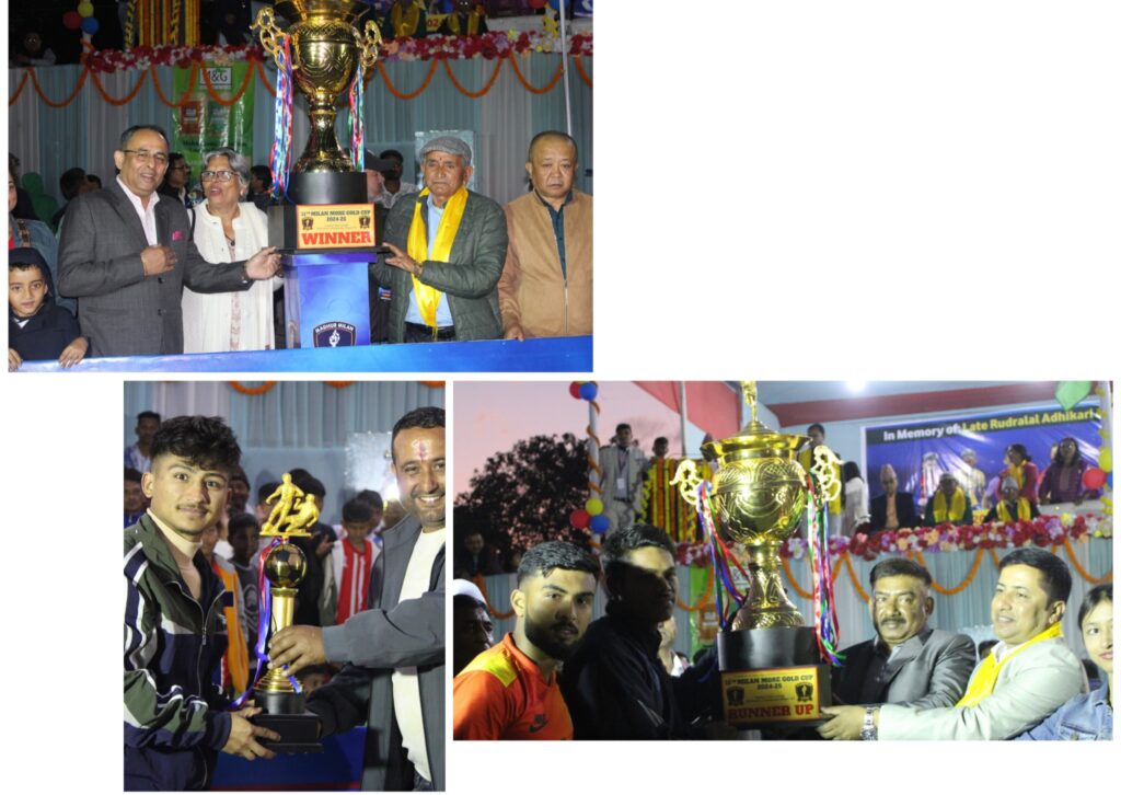 सिलगढी: मधुर मिलन संघ, मिलन मोड़को तत्त्वावधानमा आयोजित ११औं मिलन मोड़ गोल्ड कप फूटबल टुर्नामेण्टमा कनकाई स्पोर्टिंग क्लब (नेपाल) च्याम्पियन भयो। स्थानीय खेल मैदानमा आइतवार खेलिएको फाइनल म्याचमा कनकाई स्पोर्टिंग क्लबले मिलन समिति, काेलकत्ता विरुद्ध ४-०-ले जीत हासिल गऱ्यो। विजेता टीमको तर्फबाट नीरज कार्कीले २ गोल गरे। यसबाहेक रोहन कार्की र मिलन राईले पनि १-१ गोल गरे। टुर्नामेण्टमा च्याम्पियन हुने टीमलाई रुद्रलाल अधिकारी र कृष्ण कुमारी भण्डारी स्मृति विनर्स ट्रफीको साथमा २ लाख रुपियाँको नगद पुरस्कार प्रदान गरियो। यसरी रनरअप् हुने टीमलाई शोभन सिंह खेरवार र तुलसी प्रसाद शर्मा स्मृति रनरअप् ट्रफीको साथमा १ लाख रुपियाँको नगद पुरस्कार प्रदान गरियो।