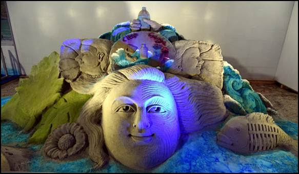 भगवान शिवको बालुवा कलामा प्रभावशाली चित्रण, जसमा एकातिर शुद्ध जल र अर्कातिर प्रदूषित जलको चित्र बनाइएको छ भने यो पर्यावरणीय जिम्मेवारी र गङ्गा नदीलाई स्वच्छ राख्ने मर्मस्पर्शी अनुस्मारक हो। नदीको किनारा र वरिपरीका भवनहरूको गूढ विवरणका साथ बनारसका प्रतिष्ठित घाटहरूका आकर्षक लघु मोडलद्वारा प्रस्तुत गरिएको छ।