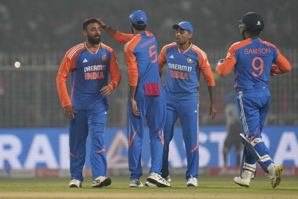 काेलकत्ता: भारतले पहिलो टी२० इण्टरनेशनल क्रिकेट म्याचमा ईंग्ल्याण्डलाई सजिलैसँग ७ विकेटले पराजित गऱ्यो। यस जीतको साथै भारतले ५ वटा म्याचको टी२० सीरीजमा १-०-को अग्रता हासिल गऱ्यो। ईडन गार्डन्सको टस हारेर पहिला ब्याटिंग गर्दै ईंग्ल्याण्डको टीम २० ओभरमा १३२ रन बनाएर अलआउट भयो। जवाफमा भारतले १२.५ ओभरमै ३ विकेट गुमाएर १३३ रनको लक्ष्यलाई हासिल गऱ्यो। भारतको निम्ति ओपनर अभिषेक शर्माले सर्वाधिक ७९ रन बनाए। उनले ३४ बल खेलेर ८ वटा छक्का र ५ वटा चौका लगाए। यसबाहेक सञ्जु सेमसनले २६, तिलक वर्माले अविजित १८ र हार्दिक पाण्ड्याले अविजित ३ रन बनाए। अभिषेक र सेमसनले पहिलो विकेटको निम्ति २६ बलमा ४१ रन जोड़े। ईंग्ल्याण्डका पेस बलर जोफ्रा आर्चरले पछिबाट सेमसन र भारतीय कप्तान सूर्यकुमार यादव (०)-लाई एकै ओभरमा आउट गर्दा भारतको स्कोर २ विकेटमा ४१ रन भएको थियो। त्यहाँबाट अभिषेकले तिलकसँग तेस्रो विकेटको निम्ति ८४ रनको पार्टनरशीप गरी ईंग्ल्याण्डको चुनौतीलाई समाप्त गरे। यसअघि टस हारेर पहिला ब्याटिंग गर्दै ईंग्ल्याण्डको तर्फबाट कप्तान जोस बटलरलाई छोड़ेर अन्य कसैले पनि उल्लेखनीय योगदान दिन सकेनन्।