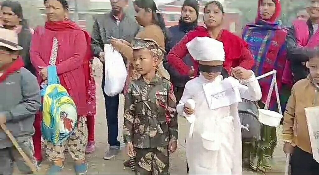 जलपाईगढी: जलपाईगढीको फणीन्द्रदेव प्राथमिक विद्यालयका विद्यार्थीहरूले आकर्षक पोशाक लगाएर कार्यक्रममा उपस्थित भीडलाई मन्त्रमुग्ध बनाए। फणीन्द्रदेव प्राथमिक विद्यालयमा फेन्सी ड्रेस प्रतियोगिता आयोजना गरिएको थियो, जसमा बालबालिकाले आफ्नो रोजाइ अनुसारको पोशाक लगाएर आउनुपर्थ्यो। यस प्रतियोगितामा भाग लिन कोही भगवान कृष्णको भेषमा आएका थिए, कोही महात्मा गान्धीको, कोही डाक्टरको, कोही अन्धो सिद्धान्तकारको, कोही अखबार विक्रेताको र कोही फेरीवाला।