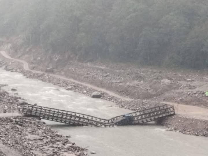 गान्तोक: उत्तर सिक्किममा फेरि एउटा बेली ब्रीज भाँच्चिएको छ। घट्ना जङ्गु क्षेत्रअन्तर्गत साङ्कलाङको हो। स्थानीय टिस्टा नदीमाथि निर्माण गरिएको एउटा बेली ब्रीज बिचैमा भाँच्चिएको छ। यसको साथै जङ्गु र उत्तर सिक्किमको मुख्यालय मंगनबीचको सम्पर्क पनि टुटेको छ। भाँच्चिएको पुलको बीचमा सीमा सड़क सङ्गठन (बीआरओ) को एउटा ट्रक फँसेको छ।