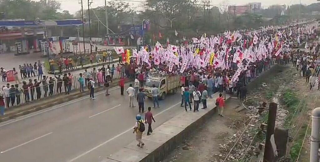 सिलगढी: डीवाईएफआईको उत्तरकन्या अभियानलाई लिएर आज शहरभर भारी तनाव देखियो। स्थिति नियन्त्रणमा लिन पुलिसले अश्रुग्यास, पानीको फोहोरा र लाठीचार्ज गरेको थियो। डीवाईएफआईका कार्यकर्ता र समर्थकहरुको पुलिससँग झडप भएको छ। डीवाईएफआईका कार्यकर्ता र समर्थकबाहेक पुलिस पनि घाइते भएका छन्। कार्यक्रमको सुरुवात जलपाई मोडबाट सडक र्यालीबाट भएको थियो। प्रदर्शनमा डीवाईएफआई राज्य सचिव मीनाक्षी मुखर्जीलगायत शीर्ष नेताहरू सहभागी थिए। जालापाई मोडबाट निस्किएको जुलुस बर्दवान रोडको नाव घाट हुँदै तीनबत्ती चोकमा पुगेको थियो। जुलुसलाई त्यहाँको ब्यारिकेडमा रोकिएको थियो। पुलिसले माइक्रोफोन प्रयोग गर्दै अनुमतिबिना आयोजना गरिएको हुनाले उक्त कार्यक्रम गैरकानुनी भएको बताए। तर पनि, डीवाईएफआई कार्यकर्ता र समर्थकहरूले आफ्नो कार्यक्रम जारी राखे। सुरुमा ब्यारिकेडअगाडि सडकमै बसेर विरोध जारी राखिएको थियो।