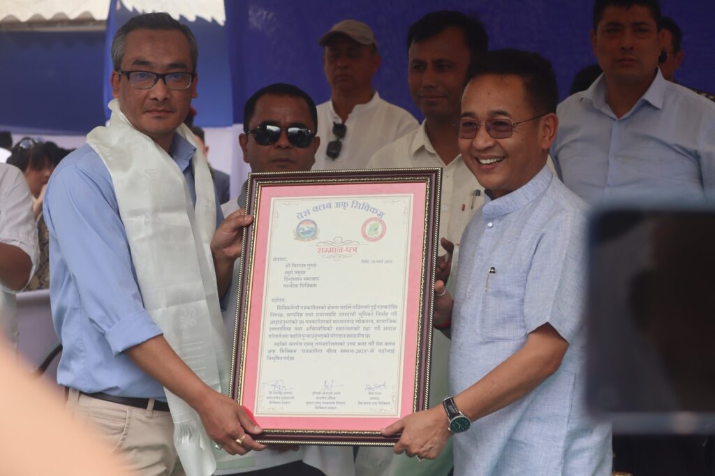 गान्तोक: लामो समयदेखि पत्रकारिताको क्षेत्रमा योगदान दिँदै आएका तीनजना पत्रकार अनि एकजना सूचना एवं जनसम्पर्क विभागका कर्मचारीलाई मुख्यमन्त्री प्रेमसिंह तामाङको बाहुलीबाट वर्ष २०२४ को श्रेष्ठ पत्रकारको रुपमा पुरस्कृत गरियो। पुरस्कृत हुनेहरूमा अङ्ग्रेजी दैनिक सम्मिट टाइम्सका संवाददाता सागर छेत्री, राष्ट्रिय समाचार एजेन्सी हिन्दुस्तान समाचारका सिक्किम ब्यूरो विशाल गुरुङ, साप्ताहिक पत्रिका चेतना-का सम्पादक दीप प्रधान र सूचना एवं जनसम्पर्क विभागका कर्मचारी श्रीमती तिल कुमारी रोका रहेका छन्।