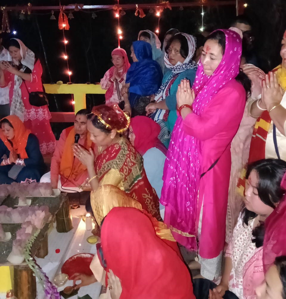 खरसाङ: तीनधारे महानदी समष्टिको घुम्ती चिया बगानमा स्थापित माता सिंहदेवी मन्दिरमा चैत्र नवरात्रि अनि राम नवमी पुजा अनुष्ठानको भव्य रुपमा सम्पन्न भएको छ। घुम्ती ग्राम सुधार पूजा समितिद्वारा आयोजित यो मन्दिरमा प्राचीन कालदेखि नै ढुंगाको चट्टानमा प्रकातिक ढंगमा अवस्थित माता सिंहदेवी, जल कन्या देवी, कालिका देवी, बुडेनी, नागनगिनी, सशस्त्र अनि संसारी देवी देवताको पूजा अर्चना घुम्ती ग्रामवासीद्वारा आयोजना गर्दै आइरहेको छन्। यो मन्दिरको निर्माणमा स्थानीय मानिसहरु जस्तै श्री सीएस तिवारी अनि घुम्ती भूतपूर्व सैनिकहरुको ठूलो योगदान छ जसले गर्दा आज मन्दिरको यो रुप देख्न सकिन्छ। वर्तमान घुम्ती ग्राम सुधार समितिमार्फत् पूजा कमिटी गठन गरि प्रत्येक वर्ष राम नवमीको पवन अवसरमा नवरात्री पूजा अनुष्ठान गरिन्छ। गाउँका बूढा पाखाहरु भन्नु हुन्छ यो मन्दिरमा दर्शन गरेर मनोकामना पूरा हुन्छ भन्ने विश्वास रहेको छ। यसै मन्दिरमा गत ३० मार्चदेखि नौ दिवसीय पूजा सम्पन्न भएको छ। उक्त पूजा कलश यात्रादेखि माताको दैनिक पूजा गरी कलरात्रीको दिन एक लाख दियो बत्ती बालेर शुरु गरिएको थियो। सप्तमीको दिन फूलपाती शोभा यात्रा अनि आज अन्तिम दिन बडी धुमधामको साथ पूजा अर्चना गरी होम गरिएको जानकारी प्राप्त भएको छ।