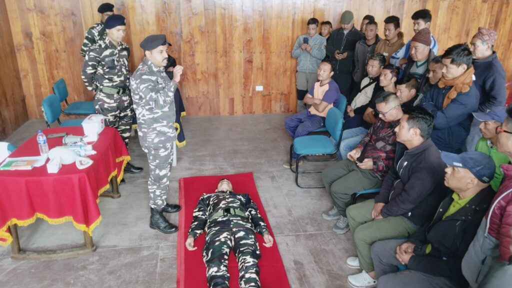 सोनादा: एसएसबीले जनसाधारणको मागमा उच्च उचाइ क्षेत्रमा पर्यटक गाइड र ल्यान्डरोभर एसोसिएसनका चालकहरूका लागि चिकित्सा प्राथमिक उपचार तालिम आयोजना गरेको छ। ३६ बटालियन सशस्त्र सीमा बलका कमान्डेन्टको निर्देशनमा मानेभञ्ज्याङमा उच्च उचाइ क्षेत्रमा कार्यरत पर्यटक गाइडहरु र ल्यान्डरोभर एसोसिएसनका चालकहरूका लागि एक चिकित्सा प्राथमिक उपचार तालिम कार्यक्रम आयोजना गरिएको छ। तालिमको उद्देश्य यी व्यक्तिहरूलाई आपतकालीन अवस्थामा प्रभावकारी रूपमा प्रतिक्रिया दिन र दुर्गम र चुनौतीपूर्ण वातावरणमा महत्वपूर्ण हेरचाह प्रदान गर्न आवश्यक चिकित्सा सीपहरू प्रदान गर्नु थियो। उक्त शिविर मानेभञ्ज्याङको सहायक कमान्डेन्ट (चिकित्सा) ब्रिज ओद्वारा सञ्चालन गरिएको थियो। उक्त प्रशिक्षणमा आधारभूत जीवन समर्थन प्रविधिहरू, प्राथमिक उपचार प्रक्रियाहरू, आपतकालीन प्रतिक्रिया प्रोटोकलहरू,