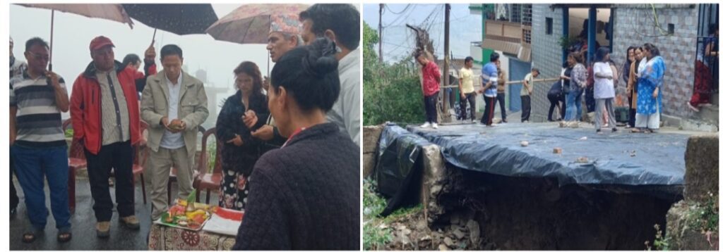 खरसाङ: केही दिन अघि खरसाङको कटलेरी रोडमा गएको पैह्रो जीटीएद्वारा मरमत्तिको कार्य शुरु गरिएको छ। गत १५ अप्रेल मंगलबारकाे दिन पानीले खरसाङको कटलेरी रोडमा रहेको सन्त अल्फन्सेस प्राथमिक पाठशाला छेउमा ठूलो पैह्रो गएर कटलेरी रोड नै बन्द भएको थियोे। खरसाङ नगरपालिकाको वार्ड नम्बर ३ भारतीय गोर्खा प्रजातान्त्रिक मोर्चाको प्रतिनिधिहरु र क्षेत्रीय सभासद श्याम शेर्पाको पहल अनि जीटीए चिफ् अनित थापाको पहलमा आजदेखि उक्त पैह्रोकाे मरमत्तिको कार्य थालिएको छ। आज विशेष वार्ड नम्बर ३ भारतीय गोर्खा प्रजातान्त्रिक मोर्चाकाे प्रतिनिधिहरु डिम्पल लामा, झुमा राणा लेप्चा, करुणा, डोरथी गुरुमा, गाउँ-घर र समाजको प्रतिनिधिकाे उपस्थितिमा विधिवत पूजा पाठ गरेर मरमत्ति कार्यकाे थाल्नी गरियो। प्रथममा पैह्रो गएकाे क्षेत्रबाट माटो ढुंगामुढा हटाएर ठीक ठाउँदेखि देवल लाउने कार्य हुने विभागले जानकारी गराएको छ। यसको साथै वार्ड नम्बर २ टेकवीर बस्तीमा पनि नालाको कार्यकाे शुरुआत भएको छ।
