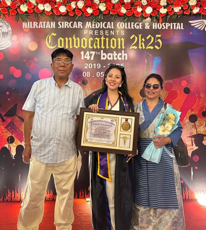 खरसाङ: २८ नम्बर खरसाङ चिमनी देवराली समष्टिको वार्ड नम्बर ७ शेर्पा बस्ती निवासी मिङजिङ् शेर्पाले आफ्नो एमबीबीएस डाक्टर साथै इन्टेन्शीप पनि सकेर डाक्टर भएका छन्। पिता ग्याल्जे शेर्पा अनि माता दावालमू शेर्पाकी सुपुत्री छोरी मिङजिङ् शेर्पाले आफ्नो एमबीबीएस डाक्टर साथै इन्टेन्शीप पनि सकेर डाक्टर भएकोमा २८ नम्बर समष्टिकाे सभासद श्याम शेर्पाले हर्ष प्रकट गर्दै सम्पूर्ण २८ नम्बर समष्टि साथै सम्पूर्ण खरसाङवासीकाे तर्फबाट बधाई टक्राएका छन्। यसको साथै शेर्पा एसोसिएसन खरसाङकाे तर्फबाट पनि सभापति दावा शेर्पा र सचिव नर्बु शेर्पाले सम्पूर्ण शेर्पा एसोसिएसन खरसाङकाे तर्फबाट नानी मिङजिङ शेर्पा र उनकाे अभिभावकलाई बधाई टक्राएका छन्। सभासद श्याम शेर्पाले जानकारी गराए अनुसार नानी मिङजिङ्ग सानैदेखि पढनुमा अब्बल थिए। उनले सेन्ट हेलेन बाट आईसीएससी गरेर एघारौं अनि बाह्रौं श्रेणीसम्म निर्मला कन्भेन्ट मतिगडाबाट उत्तीर्ण गरेकी थिइन्। त्यसपछि निट परीक्षा उत्तीर्ण गरेर एमबीबीएसकाे लागि छनौट भएकी थिइन्। उनले २०१९- २०२५ मा कलकोता निलरत्न मेडिकल कलेजबाट आफ्नो एमबीबीएस साथै इन्टेन्शीप सकेर डाक्टर बनेकाेमा हामी एकदमै हर्षित र गर्वित छौँ भनी बताएका छन्।