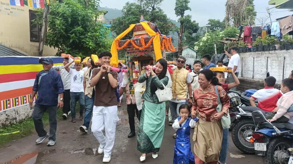 खरसाङ: तीनधारेको मिठाईडाँडास्थित पदमा छ्योलिङ गुम्बामा यसपाली तीन दिवसीय रुपमा भगवान बुद्धको २५६९औं जन्म जयन्ती पालन गरिएको छ। तामाङ बुध्दिष्ट एसोसिएसन तीनधारेको आयोजनामा गत १० मईदेखि शुरु भएको बुध्द जयन्ती समारोहको अन्तिम दिन आज बिहानदेखि साङ्ग सेरगेम (पूजा अर्चना) गरेर थालिएको थियो। त्यसपछि आज भगवान् बुद्धको कु (प्रतिमा) लिएर नगर परिक्रमा गरिएको छ। यस अवसरमा गुम्बा परिसरबाट शान्ति रैली निकालेर तीनधारेको सत्र माइलदेखि क्रिकेट बजार हुँदै राष्ट्रिय राजमार्ग भएर तीनधारेको ब्लु डाईमण्ड परिसरसम्म पुगेर फर्किएको थियो। त्यसरी नै तीनधारेको राजबारी भएर ओह्रालो झरेर गोलाई पाखा हुँदै सत्र माइल फाटक भएर पुनः मिठाईडाँडास्थित गुम्बामा पुगेर शान्ति रैली समापन गरिएको थियो। यसावधि मानिसहरुले बुध्दको कु (प्रतिमा) साथै बौध्द धर्म ग्रन्थ बोकेर शान्तिको कामना गर्दै रैलीमा सहभागिता जनाएका थिए। यसवाधि ठाउँ ठाउँमा मानिसहरूले बुध्दको प्रतिमाको दर्शन गरेका थिए भने रैलीमा सहभागिता जनाउने मानिसहरूलाई चिसोहरु वितरण गरिएको थियो।