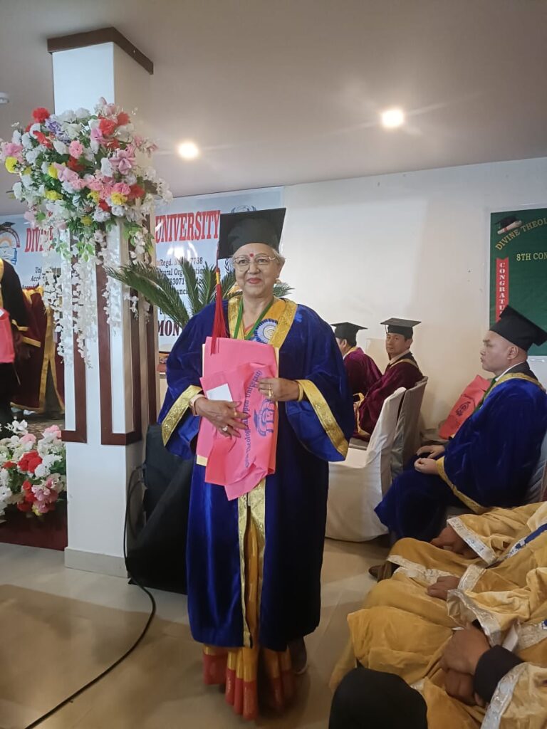 उनले अघि भनिन् -‘लगातार रुपमा काम गर्दै जाँदा कसैले हाम्रो कामलाई निहालेर मूल्याङ्कन गर्ने रहेछ भन्ने कुराको अनुभव भयो आज। लगातार रुपमा साहित्य र संस्कृतिको क्षेत्रमा कार्य गरेपछि आज आएर दक्षिण सिक्किमको नाम्चीस्थित डिभाइन थियोलोजिकल ओपेन युनिभर्सिटीको तर्फबाट आफ्नो आँठौं दीक्षान्त समारोहमा अन्य विशिष्ट योगदान दिने व्यक्तिहरुसितै मलाई पनि विद्यावारिधीको उपाधिले सम्मानित गरेकोमा आभार प्रकट गर्दछु।’