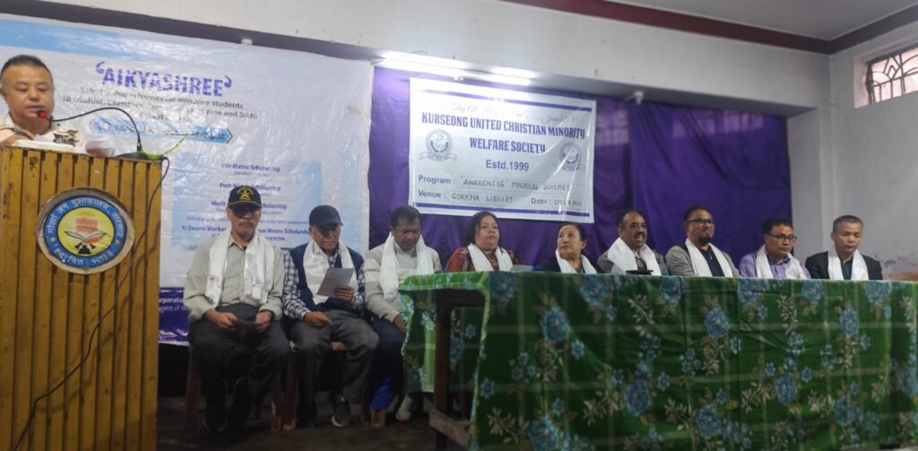 खरसाङ: धार्मिक अल्पसंख्यकहरूको निम्ति खरसाङ युनाईटेड क्रिश्चियन माइनोरेटी वेलफेयर सोसाइटीको आयोजनामा खरसाङको गोर्खा जन पुस्तकालयको प्रेक्षा गृहमा सरकारद्वारा प्रदान गरिने विभिन्न योजनाहरू र सहुलियतहरू विषय जानकारी दिन जनचेतन कार्यक्रमको आयोजना गरियो। खरसाङ माइनोरेटी सोसाइटीद्वारा आमन्त्रित धार्मिक अल्पसंख्यकहरू क्रमैले इसाई, मुस्लिम, बौद्ध धर्मावलम्बीहरूको व्यापक उपस्थिति रहेको थियो। संस्थाका उपाध्यक्ष पास्टर तिरस राईको अध्यक्षतामा सम्पन्न यस जनचेतना कार्यक्रममा खरसाङ महकुमा कार्यालयका माइनोरेटी अधिकारी एच हुसेनले सरकारद्वारा प्रदान गरिने विभिन्न योजनाहरू विषय जानकारी गराए।