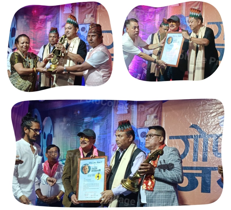 खरसाङ: गोपाल योञ्जन संगीत सम्मान यसपाली संगीतकार बरुण रसाइली र गीतकार सुकुमार बराईलीलाई प्रदान गरिएको छ। गौरव मञ्च तीनधारेको आयोजनामा २०२३ देखि शुरु गरिएको वाग्येयकार गोपाल योञ्जन संगीत सम्मान यसपाली तीनधारे क्षेत्रका संगीतकार एंव संगीतका गुरुजी साथै गायक बरुण रसाइली र तीनधारे चियाबारी निवासी गीतकार सुकुमार बराईलीलाई प्रदान गरिएको छ। उक्त पुरस्कार गौरव मञ्च तीनधारेको आयोजनामा शनिवार तीनधारेको महात्मा गाँधी हलमा आयोजित ८२औं गोपाल योञ्जन जन्म जयन्ती समारोहमा प्रदान गरिएको छ। दुवैलाई सभाध्यक्ष बिजय गुरुङ र प्रमुख अतिथि वरिष्ठ संगीतकार बसन्त छेत्रीको बाहुलीबाट खदार्पणसहित शल ओढाएर जातीय टोपी पहिराएर अनि सम्मान पत्र प्रदान गरेर सम्मान जनाइएको छ। त्यसरी नै दुवैलाई प्रायोजकहरु क्रमैले सागरमणि वाईबा र ज्योति मुखियाले दिवगंत छोरा लवाङमणि बाईबाको स्मृतिमा अनि पञ्चायत सदस्य अजय विश्वकर्म र उनकी पत्नीले आफ्ना दिवंगत माता पिता स्व संगीता विश्वकर्म र स्व रामबहादुर विश्वकर्मको स्मृतिमा प्रायोजित काष्ठ कलामा रहेको सारङ्गी प्रदान गरेर सम्मान जनाइएको छ। संगीतकार बरुण रसाइली र गीतकार सुकुमार बराईलीको परिचय र सम्मान पत्र सञ्चालनकर्ता युवराज सुन्दासले पठन गरेका थिए। उक्त गोपाल योञ्जन संगीत सम्मानपछि सम्मानित संगीतकार बरुण रसाइली र गीतकार सुकुमार बराईलीसित युवराज सुन्दासले छोटो विमर्श पनि गरेका थिए। संगीतकार, गायक एवं संगीतका गुरुजी बरुण रसाइलीको विभिन्न सांगीतिक कोशेलीहरु दर्शकहरुलाई दिईसकेका छन्। उनको गजलको एल्बम ‘निखार’ प्रकाशित छन् भने भजन संगालो ‘भजन पुष्प चरणमा’ अनि ‘साई गंगा अनि सामुहिक’ पनि प्रकाशित छन्। त्यसरी नै उनले विभिन्न गीतहरु विभिन्न एल्बमहरुमा आफ्नो स्वर र संगीत दिई सकेका छन्। उनी आकाशवाणी खरसाङको मान्यताप्राप्त गायक पनि हुन् बरुण रसाइलीले सुर गुञ्जन संगीत महाविद्यालय तीनधारे र सुकनामा सञ्चालन गरिरहेका छन्। उनले ७० को दशकदेखि नै नेपाली संगीतमा विशिष्ट योगदान दिन्दै आईरहेका छन्। त्यसरी नै तीनधारेका वरिष्ठ गीतकार सुकुमार बराईलीको गीत संग्रह ‘आमा रोएकी चियाबारीमा’ प्रकाशित छन् भने विभिन्न गायक गायिकाहरुले उनको शब्दमा रहेको गीत गाईसकेका छन् भने विभिन्न संगीतकारहरुले उनको शब्दमा रहेको गीतहरुलाई संगीत भरिसकेका छन्। उनी अहिलेका युवा पुस्ताका लागि प्रेरक साथै प्रेरणाका स्रोत पनि हुन्। गौरव मञ्च तीनधारेले २०२३ देखि स्थानीय संगीतकार र कलाकारहरुलाई सम्मान जनाउने क्रम शुरु गरेका थिए।