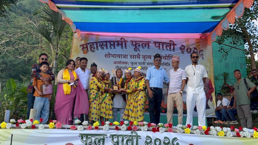 तीनधारे: घैयाबारी ग्राम पञ्चायत दुई तीनधारे स्तरीय फूलपाती शोभायात्रा एंव नृत्य प्रतियोगिता सोमबार सम्पन्न भएको छ। फूलपाती शोभायात्रा समारोह समितिको आयोजनामा सम्पन्न फूलपाती शोभायात्रा तीनधारेको शंकर निवासस्थित ब्रह्म मन्दिर प्राथमिक पाठशाला परिसरबाट शुरु भएर तीनधारे बजार हुँदै राष्ट्रिय राजमार्ग ११० भएर बीस माइलसम्म पुगेर फर्केर आई तीनधारेको क्रिकेट बजारस्थित चिल्ड्रेन पार्कमा आएर समाप्त भएको छ। चिल्ड्रेन पार्कमा आएर नृत्य प्रतियोगिता सम्पन्न भएको छ। यस कार्यक्रमको अध्यक्षता घैयाबारी ग्राम पञ्चायत दुईको उप प्रधान रञ्जित थापाले गरेका थिए भने प्रमुख अतिथिको रुपमा क्षेत्रीय सभासद नवराज छेत्री उपस्थित रहेका थिए।त्यसरी नै विशिष्ट अतिथिको रुपमा भारतीय गोर्खा प्रजातान्त्रिक मोर्चा तीनधारे महानदी समष्टिको सभापति राजीव थापा, घैयाबारी ग्राम पञ्चायत दुईको पञ्चायत प्रधान भगवती प्रधान, साहित्य कला संस्थान् तीनधारेको सभापति रञ्जनकुमार रसाइली लगायत विभिन्न संघ संस्थाहरुका प्रतिनिधिहरु उपस्थित रहेका थिए। उक्त नृत्य प्रतियोगितामा निर्णायकको रुपमा अरुणा सुन्दास, अनुपमा घतानी र अनामिका थापा उपस्थित रहेका थिए। यस नृत्य प्रतियोगितामा घैयाबारी ग्राम पञ्चायत दुईभित्र रहेका दशवटा संघ संस्थाहरुले सहभागिता जनाएका थिए। यस नृत्य प्रतियोगितामा प्रथम नवराज संघ गैरी गाउँ, दोस्रो ग्राम कल्याण समिति नयाँ कमान र तेस्रो जनसेवा संघ राजबारी भएका छन्। यस नृत्य प्रतियोगितामा प्रथम हुनेलाई आकर्षक ट्रफीसहित १० हजार, दोस्रोलाई ट्रफीसहित ७ हजार र तेस्रो हुनेलाई ट्रफिसहित ५ हजार रुपियाँ प्रदान गरिएको छ। त्यसरी सहभागी सबैलाई शान्तावाना पुरस्कार प्रदान गरिएको छ। यसै कार्यक्रममा तीनधारेका कवि साहित्यकार, पत्रकार,उदघोषक एंव शिक्षक युवराज सुन्दासलाई आयोजक समितिको तर्फबाट सम्बर्ध्दना जनाइएको छ। यसको साथै घैयाबारी ग्राम पञ्चायत दुईमा रहेका १० वटा संघ संस्थाहरुलाई पनि सम्मान जनाइएको छ।