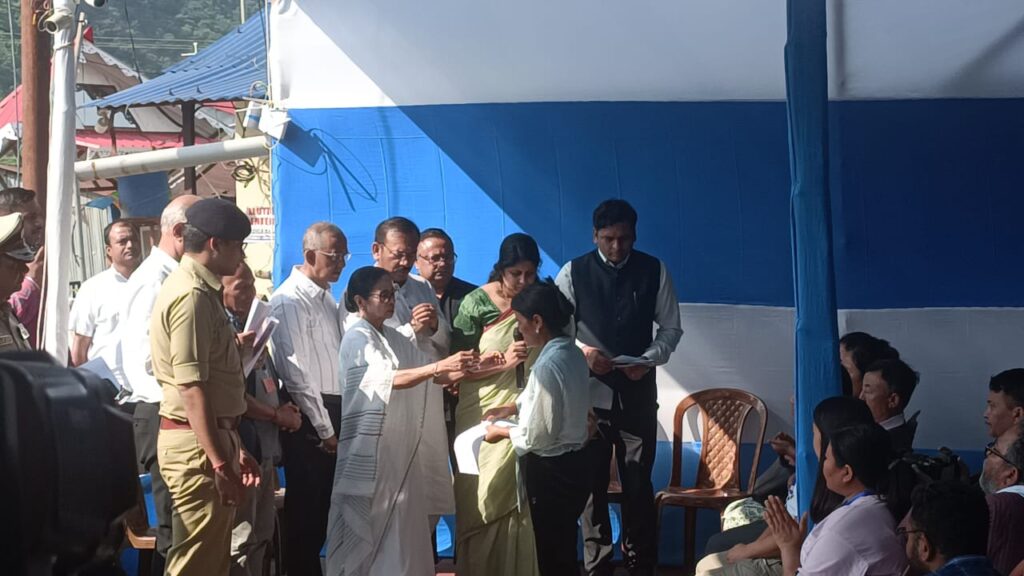खरसाङ: राज्यकी मुख्यमन्त्री ममता ब्यानर्जीले आज खरसाङ खण्ड अन्तर्गत दुधे क्षेत्रको निरीक्षण भ्रमणमा आइन्। यसावधि उनले दार्जिलिङ जिल्लाभरिका पैह्रो पिढीतहरु र बाढ पिढीतहरुलाई भेटघाट गर्नुको साथै पैह्रोमा ज्यान गुमाएका प्रत्येक मृतकलाई ५ लाख गरेर चेक वितरण गरिन्। यसको साथै मृतकको परिवारलाई राज्य सरकारको तर्फबाट होम गार्डको नोकरी दिने घोषणा गरिन्। उनले होम गार्डको नोकरीको लागि कुनै शैक्षिक योग्यता नपर्ने र ऊँचाई पनि नपर्ने बताइन्। मृतकको एक घरबाट कसले नोकरी गर्ने परिवारले निर्णय गर्नु पर्ने र यसको लागि बायोडाटा तयार पारेर राख्ने बताएकी छन्। उनले गोम गार्डको नोकरीको लागि जिल्ला शासकलाई डाटा संकलन गर्ने र जिल्ला शासकबाट जिल्ला पुलिस अधिकारीलाई र जिल्ला पुलिसले डिजीलाई सूचित हो गर्नु पर्ने बताइन्। यसको साथै बाढ पिढीत र पैह्रो पिढीतहरुको घर निर्माण गरिदिने पनि घोषणा गरिन्। यसको लागि जिल्ला शासक डा प्रीति गोयल, जीटीए प्रमुख अनित थापा, एलबी राई र राज्यको मन्त्री अरुप विश्वासलाई जिम्मेवारी दिएकी छन्। मुख्यमन्त्री ममता ब्यानर्जीले पैह्रोमा परिवारको सबै सदस्यहरु गुमाएका एकजना नानीलाई स्कलरसीप दिने र पढाई खर्च बेहोर्ने घोषणा गर्दै यसको लागि जीटीए प्रमुख अनित थापा र एलबी राई अनि जिल्ला शासकलाई जिम्मेवारी दिएकी छन्।