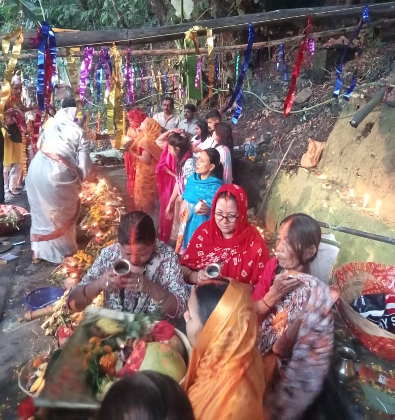 खरसाङ: तीनधारे क्षेत्रमा यस वर्ष २०२५ को छठ पूजा भक्तिभाव र शान्तिपूर्ण रुपमा पालन गरिएको छ। तीनधारे क्षेत्रका बिहारी समुदायको हिन्दु धर्मावलम्बीहरुले तीनधारे अन्तर्गत रहेका विभिन्न धाराजरुमा पालन गरिएको छ। यस क्रममा तीनधारेको धाराहरु क्रमैले होटेल गैरी, आशीलाल धारा, ऋषि धारा, काली धारा र तीनधारेदेखि केही तल चुनभट्टी नजिक रहेको ढ्वाङ खोलाको ठूलो धारा आदिमा छठ पूजाको आयोजना गरिएको जानकारी प्राप्त भएको छ। छठ पूजाको अवसरमा सोमवार साँझ फल प्रसादको साथमा पूजा अर्चना गरेर मंगलवार बिहान ४ बजीदेखि तीनधारे क्षेत्रमा रहेका धाराहरुमा ब्रत बसेर चोखो र पवित्र मनमा सूर्योदय नभईञ्जेलसम्म पूजा गरेर सूर्यलाई चोखो पानी चढाएर छठ पूजा सम्पन्न गरिएको जानकारी प्राप्त भएको छ। छठ पूजा भारतभरि नै बिहारी समुदायको हिन्दु धर्मावलम्बीहरुले पालन गर्ने गरेका छन्। छठ पूजालाई महत्वपूर्ण मानेर चोखो मनले नियमपूर्वक चोखो र पवित्र मनको साथमा पालन गरिनेछ। छठ पूजा विषयमा तीनधारेको राजबारी निवासी नरेन बम्जनले बताए अनुसार छठ पूजाको मूल अर्थ प्राचीन समयमा देवी देवताहरूलाई राक्षसहरुले पूजा पाठ र ध्यानमा बाधा पुराई आक्रमण गरी रातभरि लडेर जब सूर्य उदय भएपछि राक्षसहरु आफै भागेको र बिजय हाँसिल भएको सम्झेर उक्त दिनदेखि चोखो पानी चढाउनुको साथै फल प्रसाद चढाई विशेष स्त्री जातिहरु उपवास बसेर पानीको चोखो धाराहरुमा फूलहरुले सजाई सूर्य नउदाञ्जेलसम्म पानीमा उँभेर ध्यानमग्न भई पानी चढाउँदै प्रतिक्षा साँच्ने गर्दछन्। यसको साथै जब सूर्य उदाएपछि बिजय प्राप्त भएको सम्झेर घर घरतिर पुगी खुशी मानी ईष्टमित्र सबैलाई फल प्रसाद बाँडेर आफ्नो ब्रत पनि खोल्ने गर्दछन्। तीनधारे क्षेत्रका बजार निवासी एक वृध्द जय प्रकाश गुप्ताले आफुले जब चाल पाएदेखि आजसम्म आफ्नो ६५ वर्षको उमेरसम्म छठ पूजा निरन्तर गर्दै आएको र प्रायः तीन पुस्ता भईसकेको बताएका छन्। उनले यसरी विश्वास गरेर नियमपूर्वक छठ पूजा मनाउँदै आएकोले आफु साथै आफ्नो परिवार सधैं सकुशल र आनन्दमय रहेको पनि बताएका छन्।