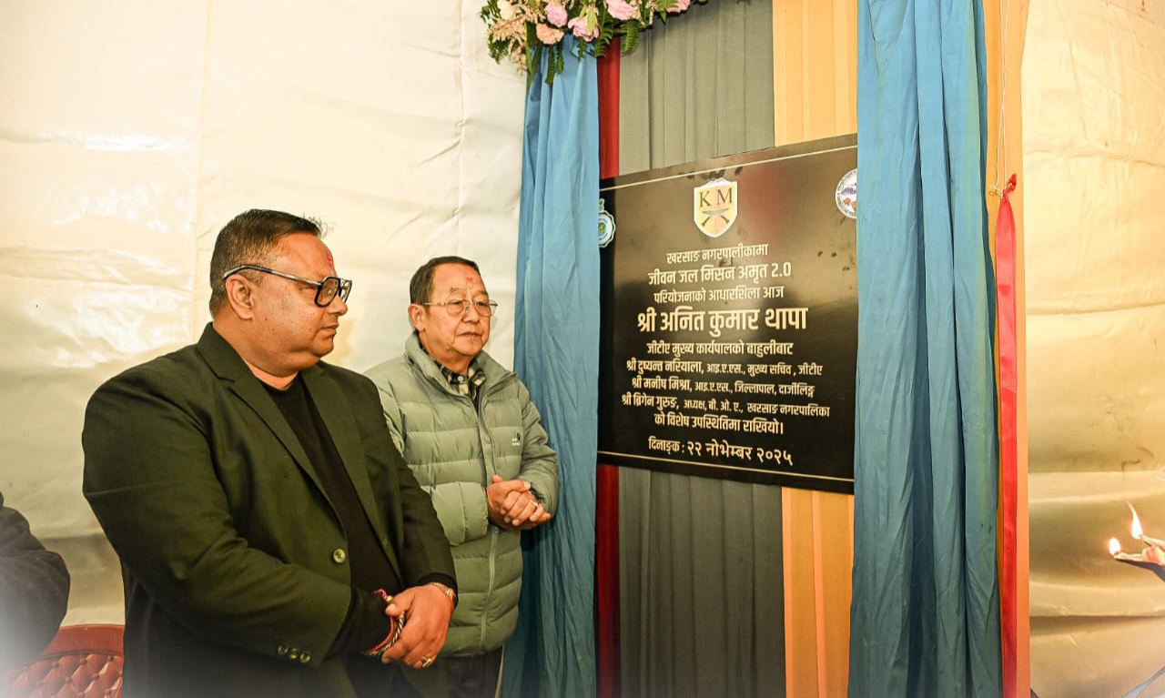 खरसाङ: गोर्खाल्याण्ड क्षेत्रीय प्रशासनको प्रमुख कार्यपाल अनित थापाको बाहुलीबाट खरसाङ नगरपालिका क्षेत्रको लागि पिउने पानीको समस्या समाधान गर्न हेतु अमृत २.० पिउने पानी परियोजनाको शिलान्यास गरिएको छ। पश्चिम बंगाल सरकारको सहकार्यमा एमईडी सिलगढी र खरसाङ नगरपालिकाद्वारा अमृत २.० पिउने पानीको परियोजना खरसाङको मन्टिभियट खेल मैदानमा आयोजित शिलान्यास कार्यक्रमलाई खरसाङ नगरपालिकाको चेयरम्यान ब्रिगेन गुरुङले अध्यक्षता गरेका थिए भने प्रमुख अतिथिको रुपमा जीटीए प्रमुख अनित थापा उपस्थित रहेका थिए। लगभग २०० करोडको लागतमा निर्माण हुन लागेको उक्त अमृत २.० पिउने पानी परियोजनाको पूजा अर्चनासहित धुप दीप प्रज्ज्वलन गरी खरसाङ नगरपालिकाको चेयरम्यान ब्रिगेन गुरुङले नरिवल फुटाएर साथै जीटीए प्रमुख अनित थापाको बाहुलीबाट पर्दा उघारेर शिलान्यास गरिएको छ। सबिना गिरीले सञ्चालन गरेको उक्त शिलान्यास कार्यक्रममा स्वागत सम्भाषण खरसाङ नगरपालिकाको भाइस चेयरम्यान सुवास प्रधानले राखेका थिए। कार्यक्रममा जीटीए आईडलको विजेता सिमोन आलेले आफ्नो प्रस्तुति दिएका थिए। कार्यक्रममा विभिन्न सांस्कृतिक र सांगीतिक कार्यक्रमहरु पनि प्रस्तुत गरिएको थियो। कार्यक्रममा जीटीएको प्रमुख सल्लाहकार अमर लामा, पूर्व सांसद एंव हिल तृणमूल कांग्रेस नेत्री शान्ता छेत्री, सभासदहरु कल्पना प्रधान, अनोश थापा, श्याम शेर्पा, नुरी शेर्पा, खरसाङ पञ्चायत समिति सभापति अनु छेत्री, खरसाङ महकुमा शासक आईएएस प्रिया यादव लगायत अन्यहरु उपस्थित रहेका थिए। यस अमृत २.० पिउने पानी परियोजनाले खरसाङ नगरपालिका क्षेत्रमा पिउने पानीको आपूर्ति पूरा गरिने आशा व्यक्त गरिएको छ। यस परियोजनाको काम लगभग अढाई वर्षको समयावधिमा समाप्त हुने लक्ष्य राखिएको बताइएको छ। यस पिउने पानीको जल परियोजना विषयमा पत्रकारहरुसित कुराकानी गर्दै खरसाङ नगरपालिकाको भाइस चेयरम्यान सुवास प्रधानले जीटीए प्रमुख अनित थापा गत समयमा जीटीएको पीएचईको कार्यकारी सभासद हुँदा नै खरसाङको लागि पिउने पानीको आपूर्ति पूरा गर्ने संकल्प गरेका थिए अनि जीटीए प्रमुख भएपछि अहिले खरसाङ नगरपालिका क्षेत्रको पिउने पानीको समस्या पूरा गर्नलाई काम गरिएको बताए।