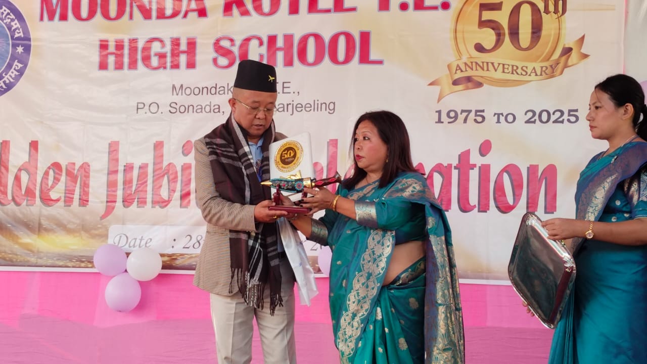सोनादा: मुण्डाकोठी उच्च विद्यालयको स्वर्ण जयन्ती समारोह सम्पन्न भएको छ। पाँच दशकको लामो शैक्षिक यात्रालाई स्मरण गर्दै विद्यालय परिवार, पूर्व विद्यार्थी, अभिभावक, स्थानीय समाजका अग्रजहरू तथा विशिष्ट अतिथिहरूको उपस्थितिमा कार्यक्रम सम्पन्न भएको छ।मुण्डाकोठी उच्च विद्यालयले आफ्नो गौरवशाली ५०औँ स्थापना दिवस उत्साह, उमङ्ग र ऐतिहासिक महत्त्वका साथ मनाएको छ। उक्त स्वर्ण जयन्ती समारोहमा प्रमुख अतिथिको रुपमा गोर्खाल्याण्ड क्षेत्रीय प्रशासनको डेपुटी चेयरम्यान एंव क्षेत्रीय सभासद राजेस चौहान उपस्थित रहेका थिए। विशिष्ट अतिथिको रुपमा सभासद नुरी शेर्पा, पूर्व सभासदहरु महेन्द्र प्रधान र रबिन्द्र लामा, एआई, एसआई, पूर्व शिक्षक शिक्षिकाहरु, पञ्चायत प्रधान लगायत अन्यहरु उपस्थित रहेका थिए। कार्यक्रममा स्वागत सम्भाषण शान्ति राईले राखेकी थिइन् भने मुण्डाकोठी विद्यालयको पृष्ठभूमि र इतिहास विषयमा प्रधान अध्यापिका सुधा राईले विस्तृत जानकारी गराएकी थिइन्। कार्यक्रममा बीके देवान, एनएल राई लगायत पूर्व शिक्षकहरु र पूर्व विद्यार्थीहरुलाई सम्वर्ध्दना जनाइएको थियो। यसको साथै प्रमुख, विशिष्ट अतिथिहरु, विभिन्न विद्यालयका शिक्षक शिक्षिकाहरुलाई स्मृति चिनो प्रदान गरेर सम्मान जनाइएको छ। सबैलाई प्रधान अध्यापिका, प्रमुख अतिथि र विशिष्ट अतिथिहरुका बाहुलीबाट सम्मान जनाइएको छ। कार्यक्रममा विभिन्न सांस्कृतिक र सांगीतिक कार्यक्रमहरु आयोजना गरिएको थियो। कार्यक्रममा प्रमुख अतिथिको रुपमा उपस्थित जीटीएको डेपुटी चेयरम्यान राजेस चौहानले वक्तव्य राखेका थिए। उल्लेखनीय छ, मुण्डाकोठी उच्च माध्यमिक विद्यालयको स्थापना सन् १९७५ मा भएको थियो भने यस विद्यालयले आफ्नो गौरवशाली ५० वर्षको यात्रा पूरा गरेको छ। यस स्वर्ण जयन्ती कार्यक्रमले विद्यालयले विगत ५० वर्षमा हाँसिल गरेको शैक्षिक उपलब्धि, सामाजिक योगदान र स्थानीय समुदायलाई दिएको पहिचानलाई विशेष रूपमा उजागर गर्यो। विद्यार्थीहरूका सांस्कृतिक प्रस्तुति, सम्मान समारोह, वक्तव्य तथा विद्यालय विकास सम्बन्धी योजनाहरूले कार्यक्रमलाई अझै अर्थपूर्ण बनाएको थियो।