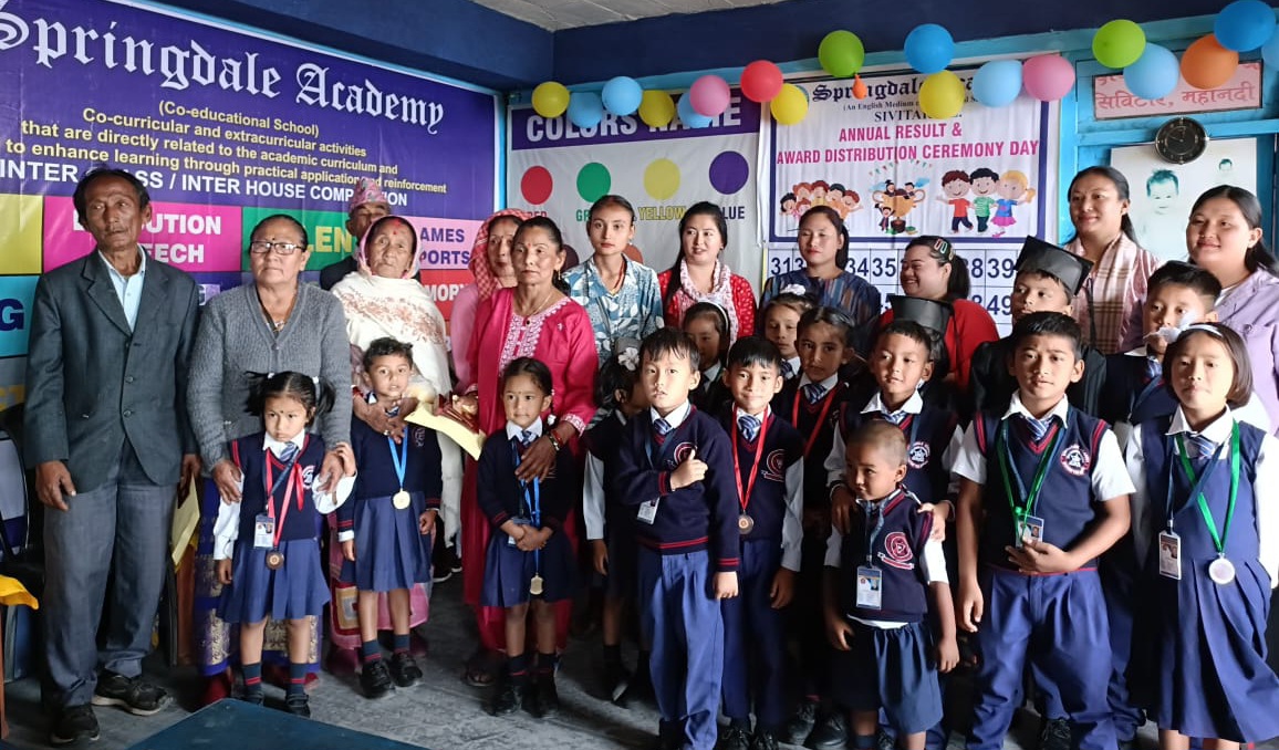खरसाङ: तीनधारे महानदी समष्टिको सिविटार चियाबारीमा रहेको स्प्रिङडेल एकाडेमीको वार्षिक पुरस्कार वितरण समारोह साथै सम्मान कार्यक्रम सम्पन्न भएको छ। उक्त कार्यक्रमको अध्यक्षता स्कूलका प्राचार्य शरणकुमार राईले गरेका थिए भने प्रमुख अतिथिको रुपमा पूर्व प्रधान अध्यापक, पूर्व पञ्चायत प्रधान एंव महानदी सिविटार वरिष्ठ नागरिक कल्याण समाजको मुख्य सल्लाहकार जुध्द शमशेर छेत्री उपस्थित रहेका थिए। शिक्षिकाद्वय ईशा राई र सुनिति घिसिङले सञ्चालन गरेको कार्यक्रममा स्कूलको वार्षिक प्रतिवेदन र विवरण प्राचार्य शरणकुमार राईले राखेका थिए।