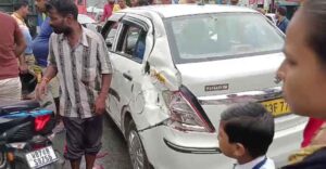 सिलगढी: बिहान ७ बजे शिव मन्दिर मेडिकल रोडमा एउटा सडक दुर्घटना हुँदा त्यहाँ एउटा सानो चार चक्के गाडी ट्राफिक सिग्नलमा रोकिँदा पहिले पछाडीबाट तीव्र गतिमा आएको