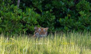 কুলতলী: দক্ষিণ ২৪ পরগনা: সাধারণত শীতের মরশুমে খাবারের সন্ধানেই জঙ্গল থেকে বেরিয়ে বাঘ লোকালয়ে ঢুকে আসে বাঘ। নদী-খালে এই সময় জল কম থাকায় অনায়াসে সাঁতার কেটে